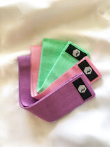Designed to activate your glutes and inner thighs, our resistance bands have 3 levels of resistance, - Light (green), Medium (pink) & Heavy (purple), to help sculpt and tone the booty and thighs.
