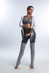 Shush! No one needs to know how snug you feel.. A stylish cover-up for post work-out fit for work or play.